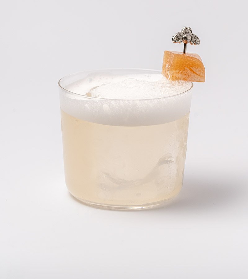 Upcycled cheese rinds add savoury notes with hints of umami and fruit notes. A complex take on a whiskey sour.