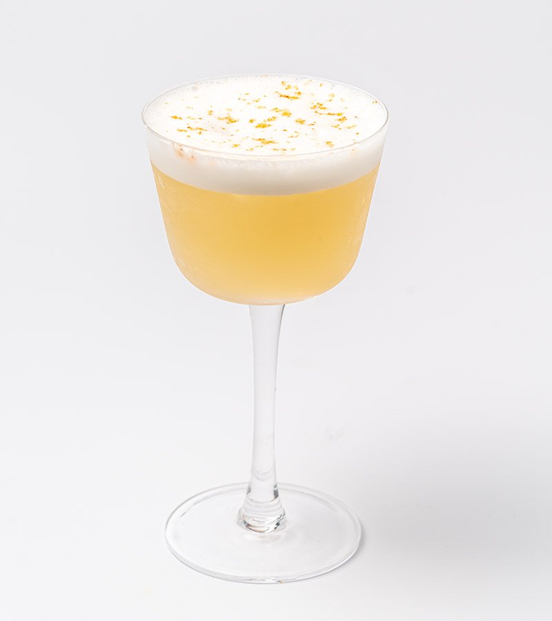 A milk punch style cocktail with notes of toasted rice and mango.